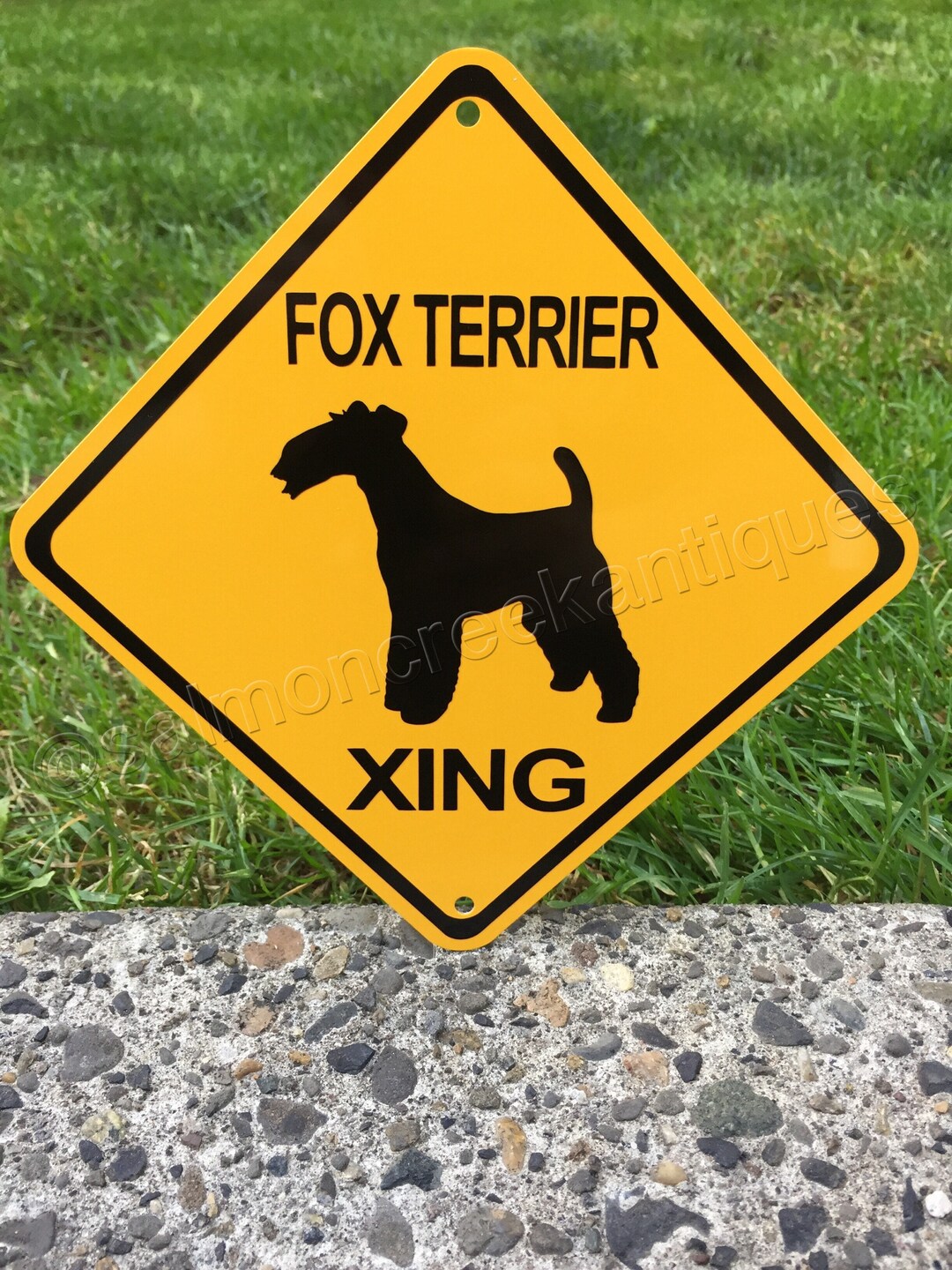 Fox Terrier Xing Metal Caution Yellow Dog Crossing Sign Etsy Australia