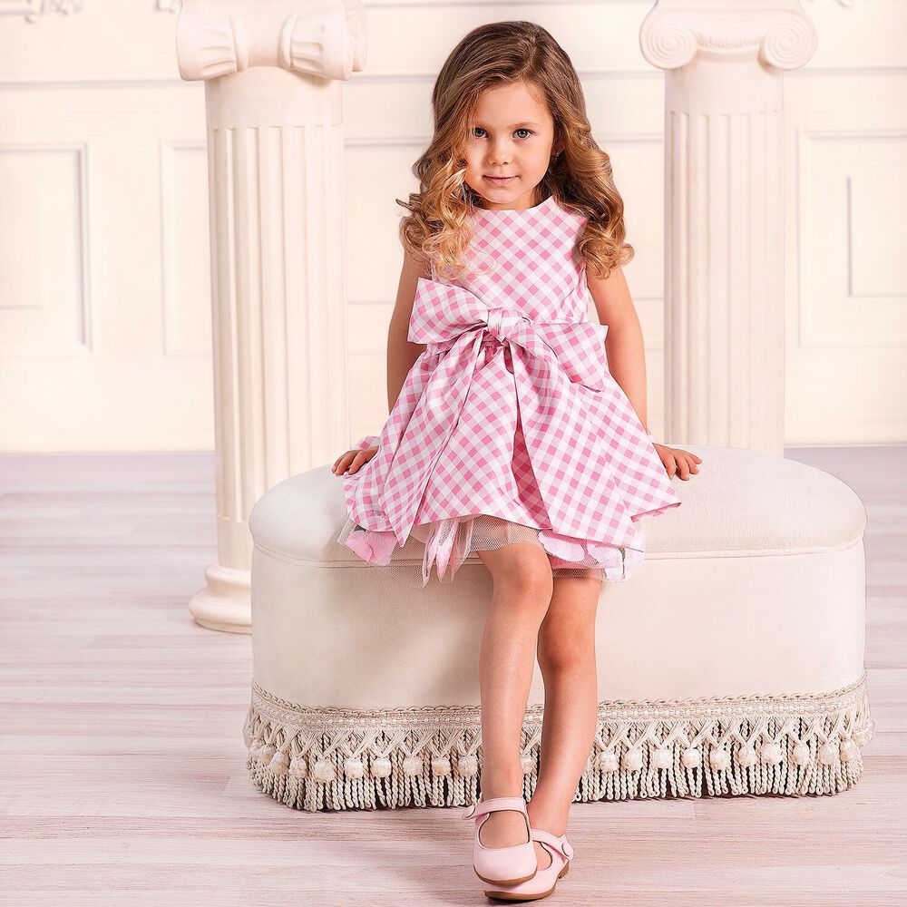 Mama Luma Girls Pink White Gingham Dress Junior Couture Uae